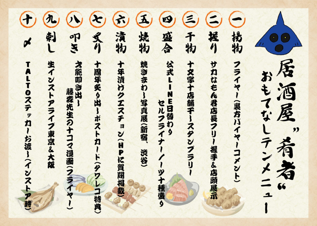 リリース記念催し企画、居酒屋”肴者”おもてなしテンメニューの詳細が続々発表!!