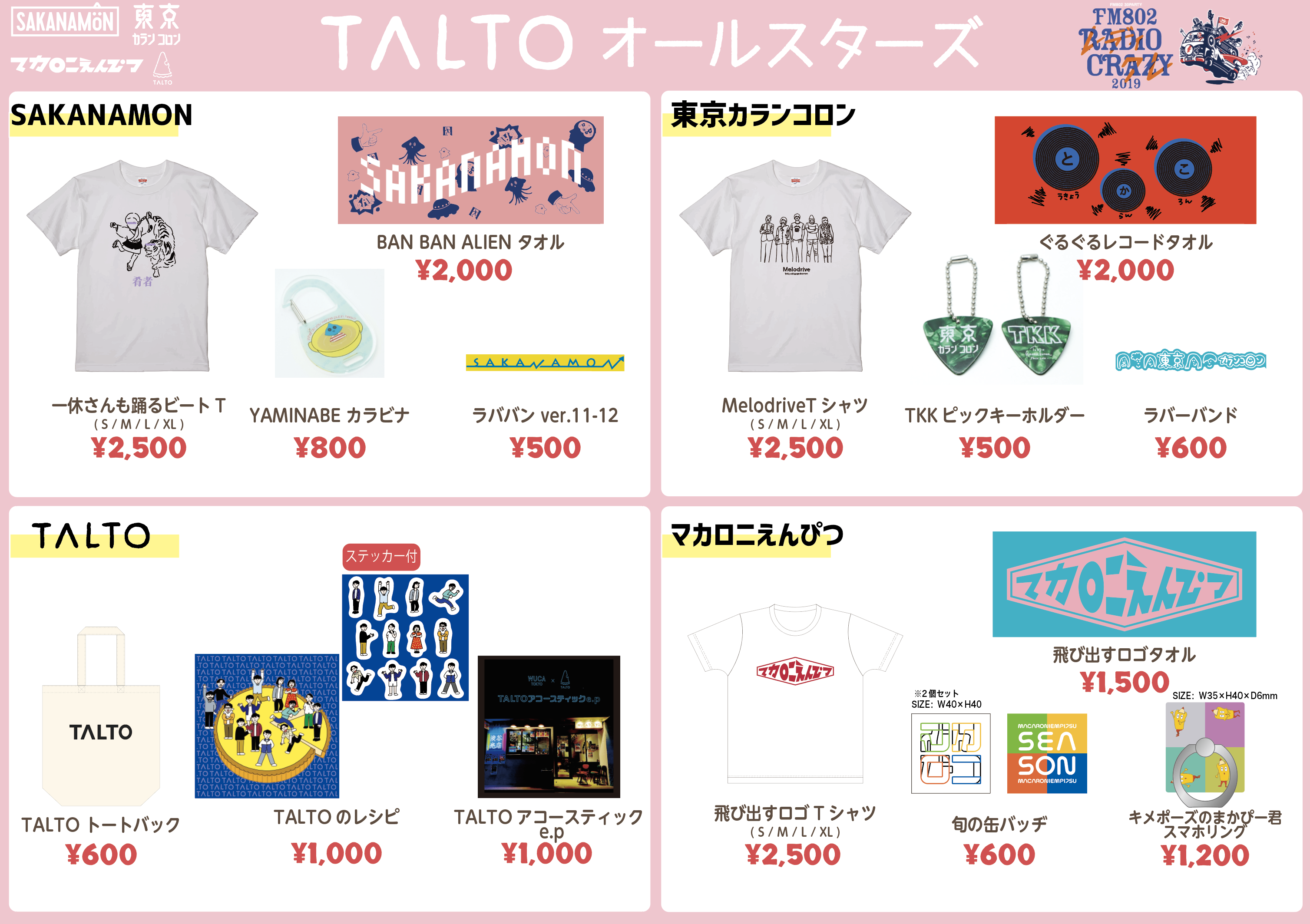 12/27(金)「FM802 RADIO CRAZY 2019」TALTOオールスターズグッズラインナップ公開!!