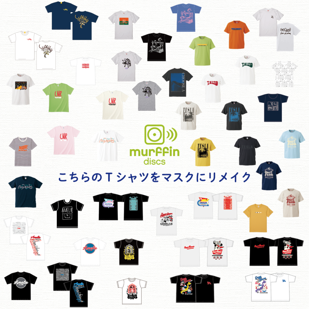 murffin discs所属アーティストのTシャツの生地を使用した布製オリジナルマスクの発売が決定!