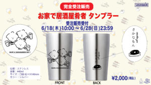 完全受注グッズ「お家で居酒屋肴者タンブラー」6/18(木)10:00より受付スタート!!