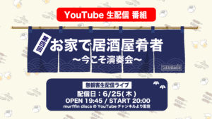 6/25(木) 20時よりmurffin discsのYouTubeチャンネルにて生配信ライブ「お家で居酒屋肴者~今こそ演奏会~」の配信が決定しました!