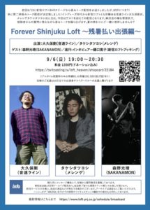 9/6(日)『Forever Shinjuku Loft 出張納涼会』にBa.森野光晴の出演が決定!!