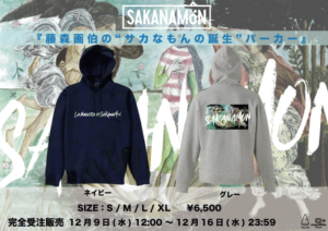 完全受注 裏起毛パーカー「藤森画伯の"サカなもんの誕生"パーカー」の受注が、12/9(水)12:00より受付スタート!!