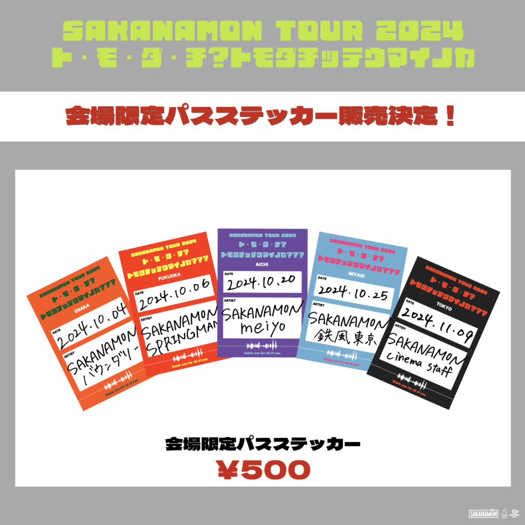 10/4(金)からスタートするSAKANAMON TOUR 2024「ト・モ・ダ・チ?トモダチッテウマイノカ???」にて会場限定グッズの販売が決定!